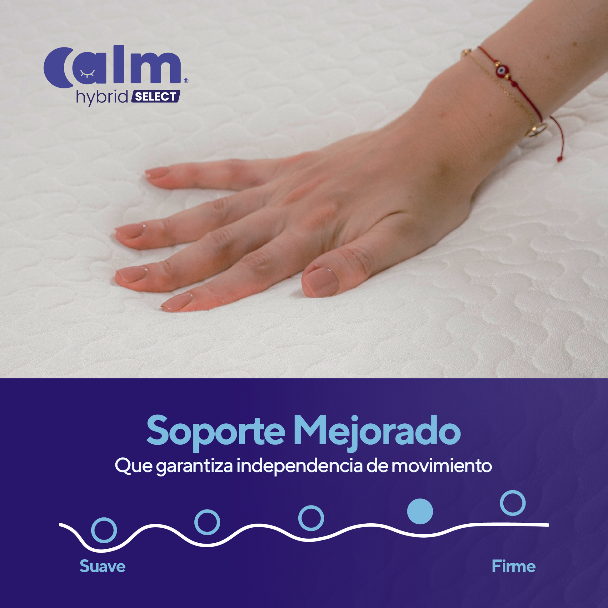 El Hybrid Select es el colchón insignia de Calm, diseñado para quienes buscan lujo, comfort y tecnología avanzada en un solo producto. Su combinación única de espumas y resortes pocket brinda una experiencia de descanso incomparable, adaptándose a las necesidades de quienes valoran el descanso de calidad.