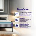Capa de Memory Foam (3 cm): Proporciona un alivio personalizado en puntos de presión, adaptándose a tu cuerpo para garantizar un descanso reparador.